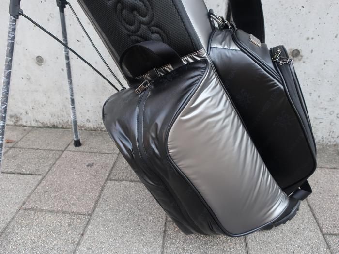 軽量で光沢感のある防水生地を使用したスタンド型キャディバッグ。