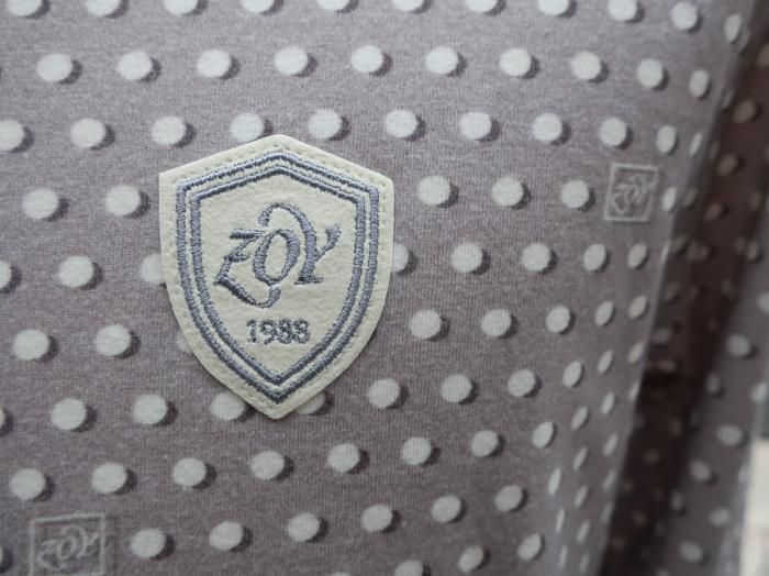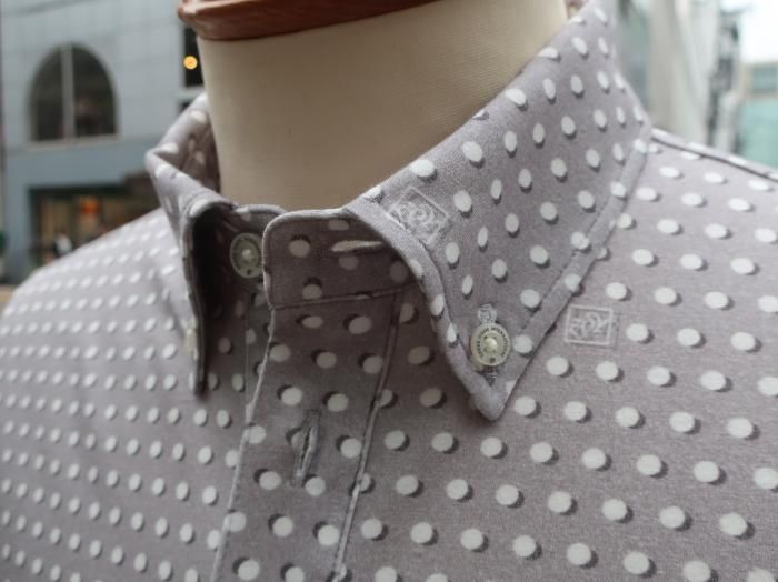 やわらかなストレッチ性を持つベア天竺素材に、ドット柄の総柄プリントを施したZOYの長袖シャツ。