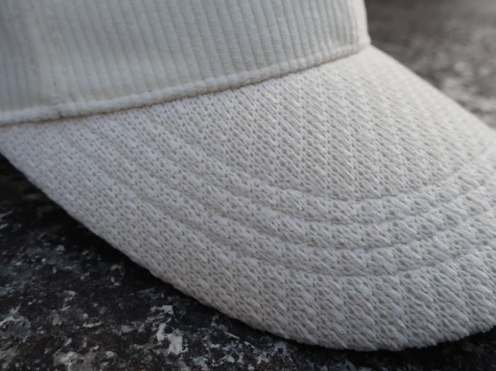 トリコットコーデュロイの柔らかな肌触りと、リサイクルモール素材のつばを組み合わせた