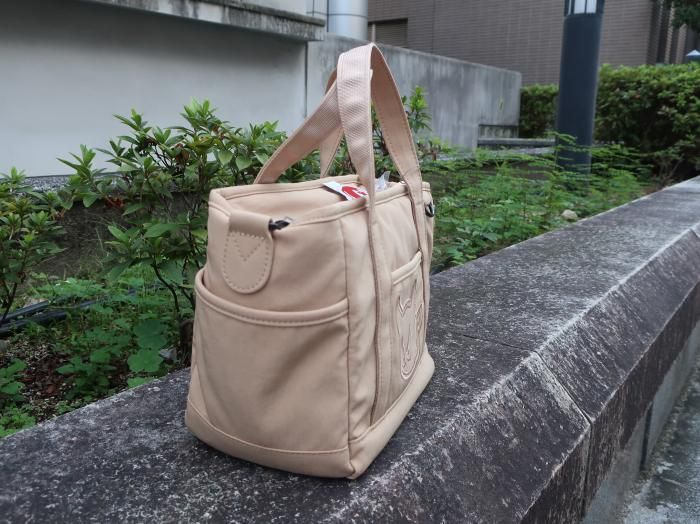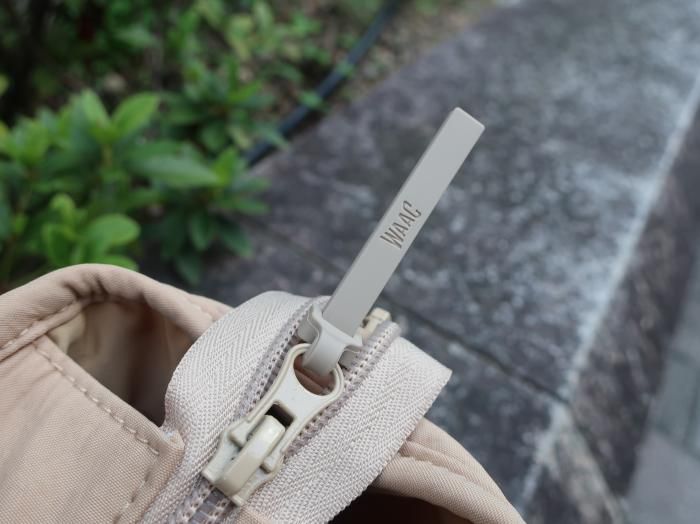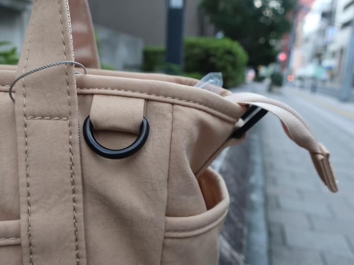 底びょう付きで地面に置いても安定し、開口部はファスナー仕様なので大事な荷物をしっかり守れるのも嬉しいポイントです。