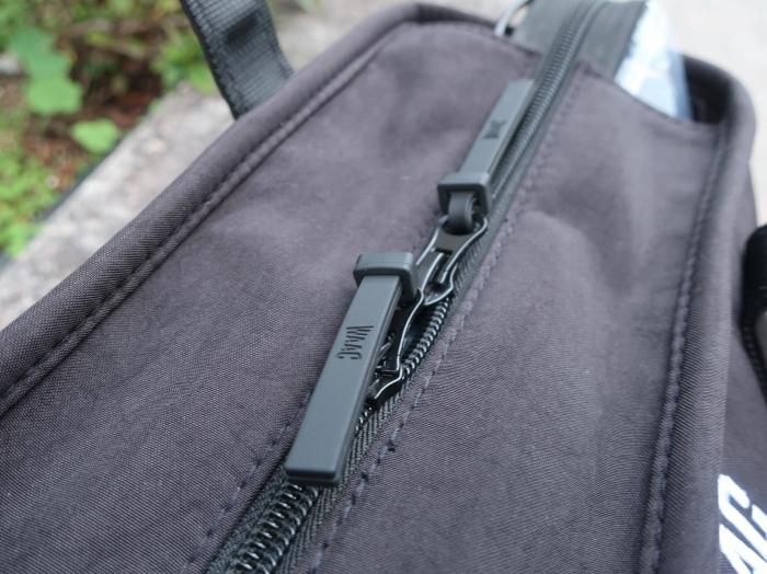 底びょう付きで地面に置いても安定し、開口部はファスナー仕様なので大事な荷物をしっかり守れるのも嬉しいポイントです。