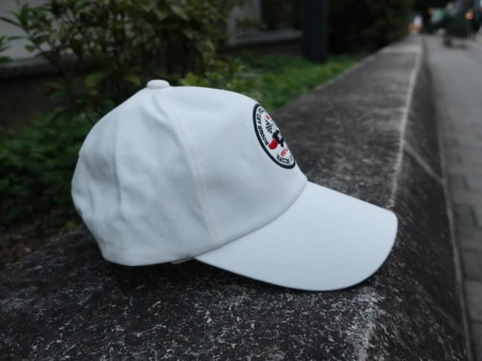 フロントにレーシングチームのワッペンを配したスポーティーなキャップ
